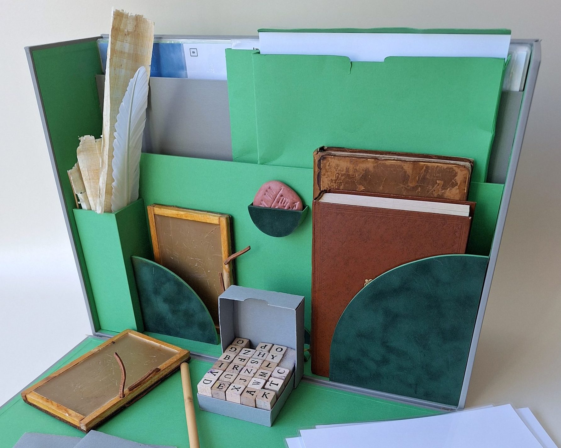 Histoire de l’écriture : exploration ludique de l’évolution du livre, suivie d’une initiation à la reliure et à l’écriture.